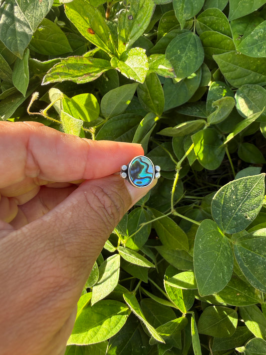 Abalone Mother of Pearl Sterling Silver Ring with Accents - Size 6.5