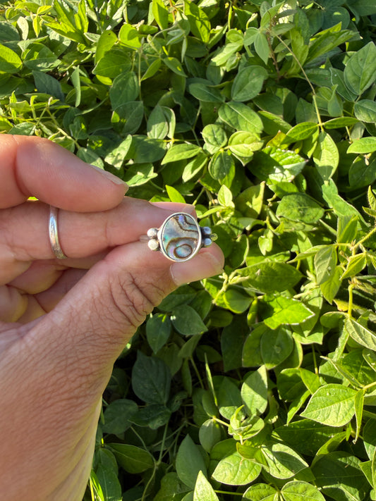 Abalone Mother of Pearl Sterling Silver Ring with Accents - Size 6