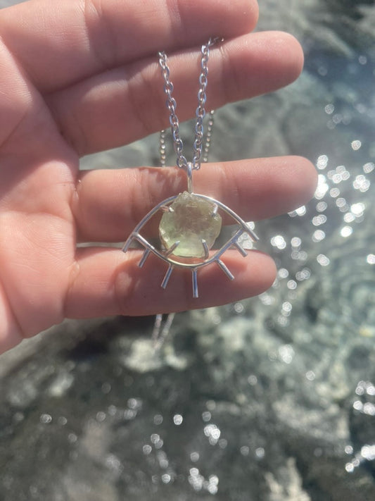 Green Flourite Third Eye Prong Set Necklace
