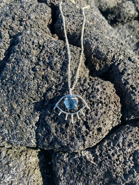 Blue Fluorite Third Eye Prong Set Necklace Pendant