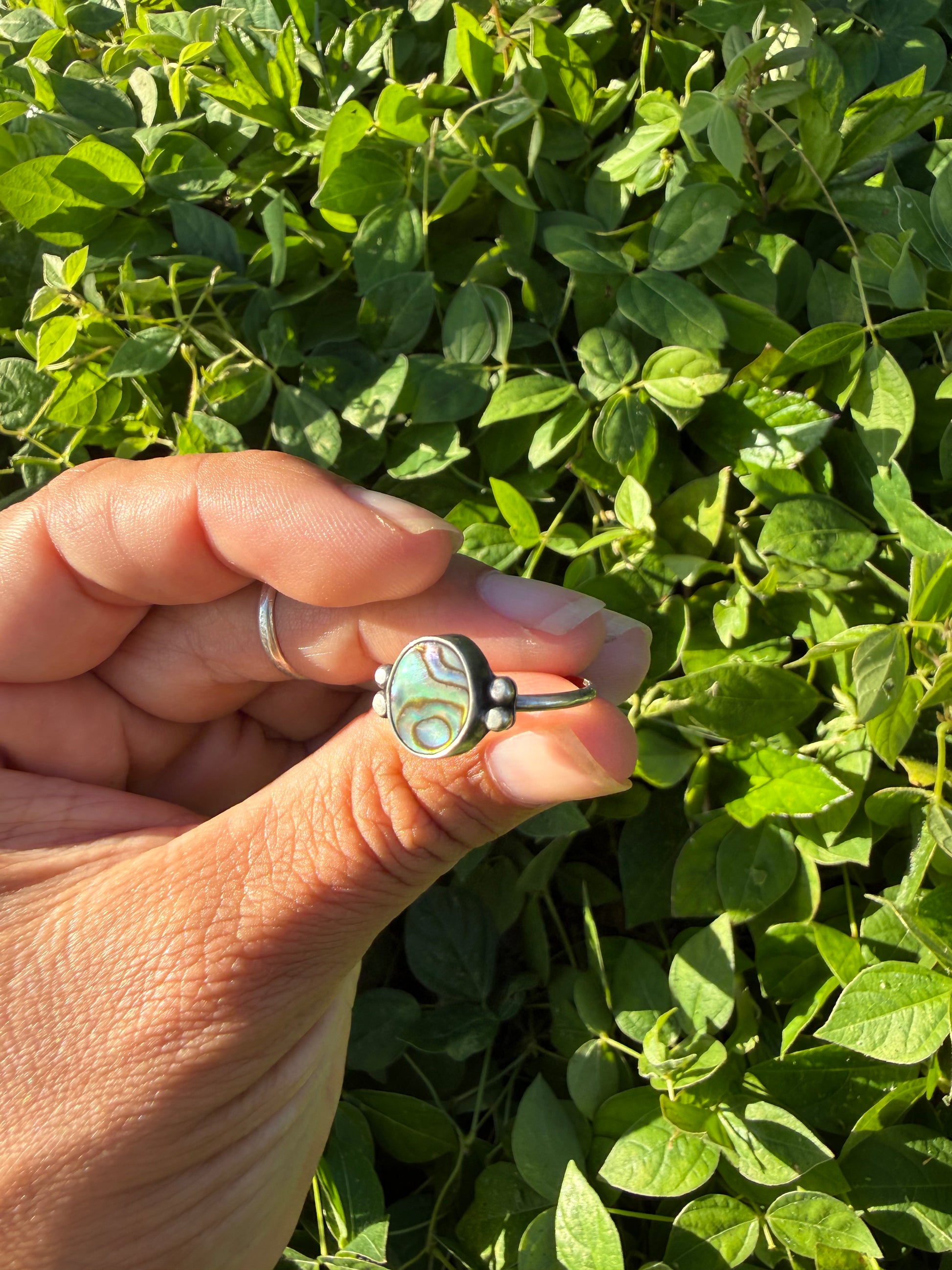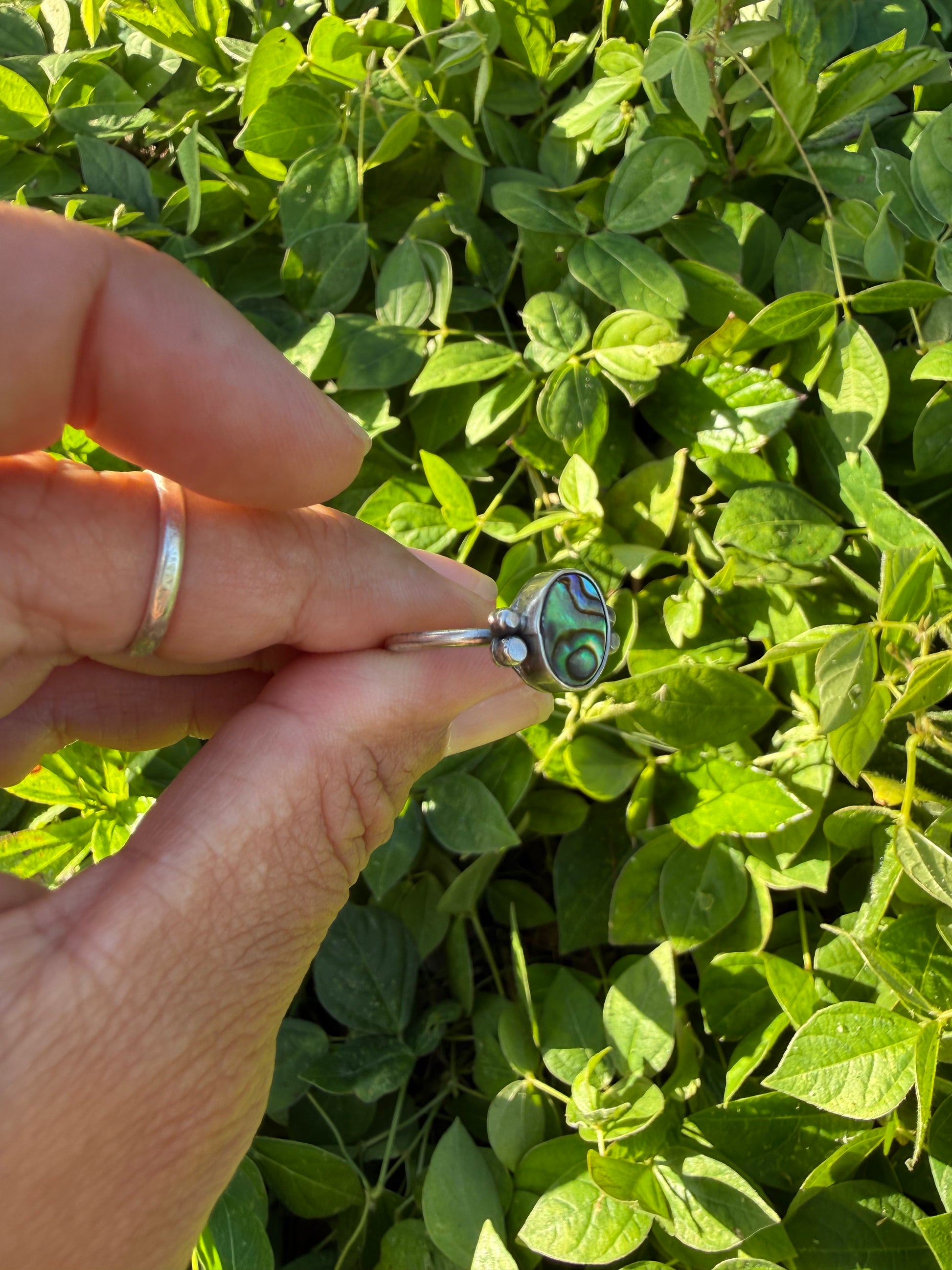 Abalone Mother of Pearl Sterling Silver Ring with Accents - Size 8